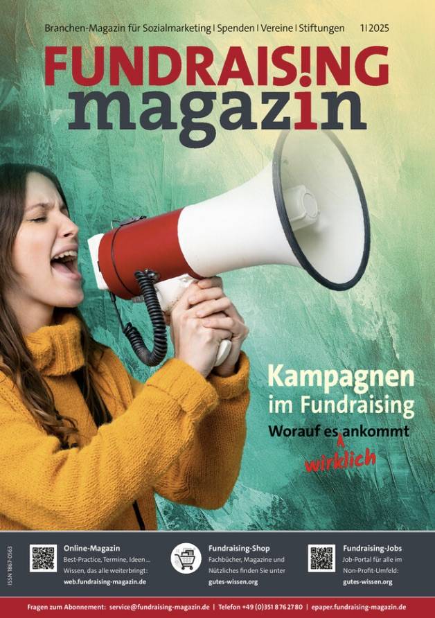 Kampagnen im Fundraising – das ist der Themenschwerpunkt dieser Ausgabe. Lesen Sie, wie man Fundraising-Kampagnen und sogar Kreativität sinnvoll plant, wo sich KI jetzt schon einsetzen lässt und wie sich das alles in harten Zahlen ausdrückt.