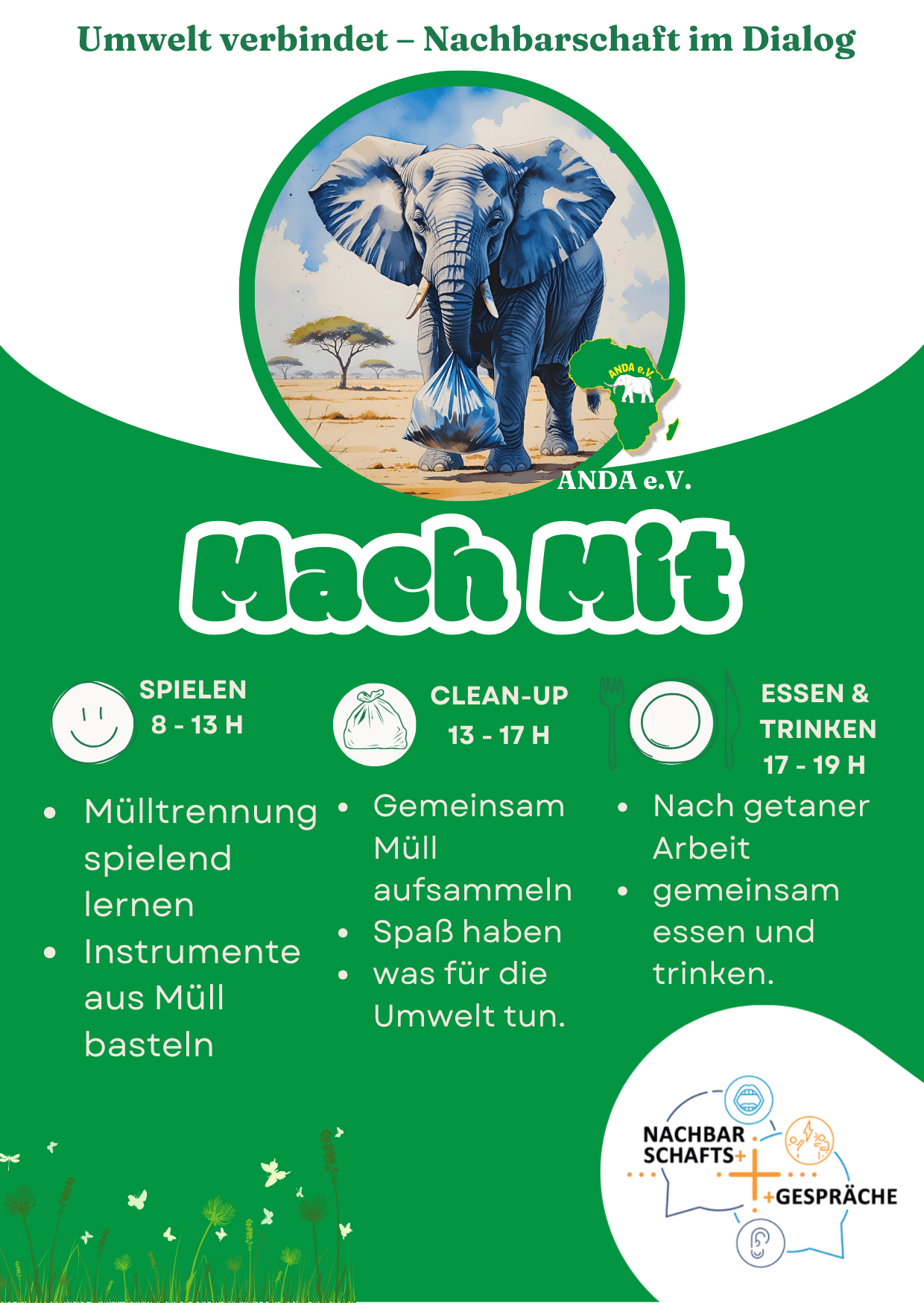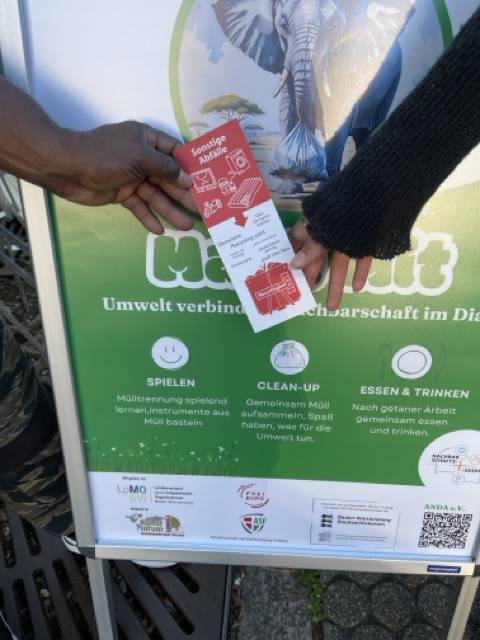 Doch die Veranstaltung war mehr als eine Putzaktion: ANDA e.V. schuf einen Raum für Dialog, Begegnung und kulturelles Miteinander. Als Dankeschön für alle Helferinnen und Besucherinnen folgte ein gemeinsames afrikanisches Essen in der Tanzsporthalle in der Markgrafenstraße.