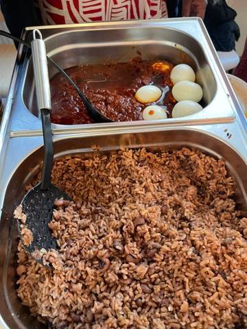 Gerichte aus Togo sind sehr lecker: Reis, Gemüse, Tomaten-Sauce, gekochte Eier, gebackenes Hähnchen, Fisch und mehr. Dazu eine scharfe Würzpaste, die dem Gericht den letzten Schliff gibt.