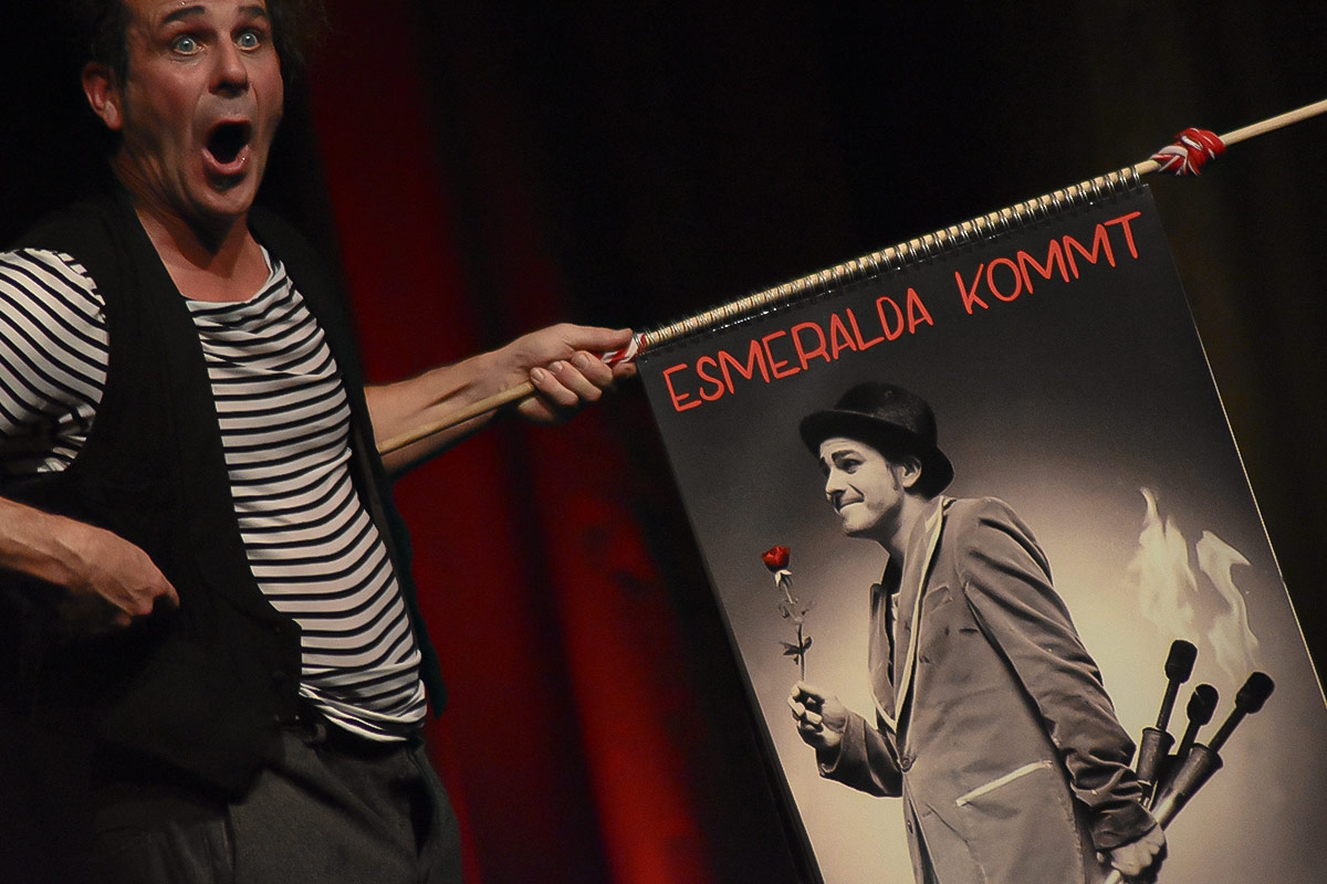 Klikusch, der clowneske Artist mit dem ungestümen Charme feiert! Mit seinem Publikum! Unglaublich, atemberaubend, berührend. Heute auf den Brettern, die die Welt bedeuten: